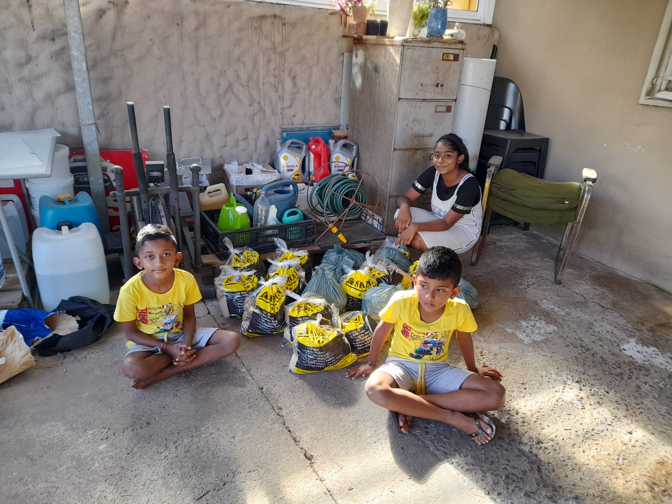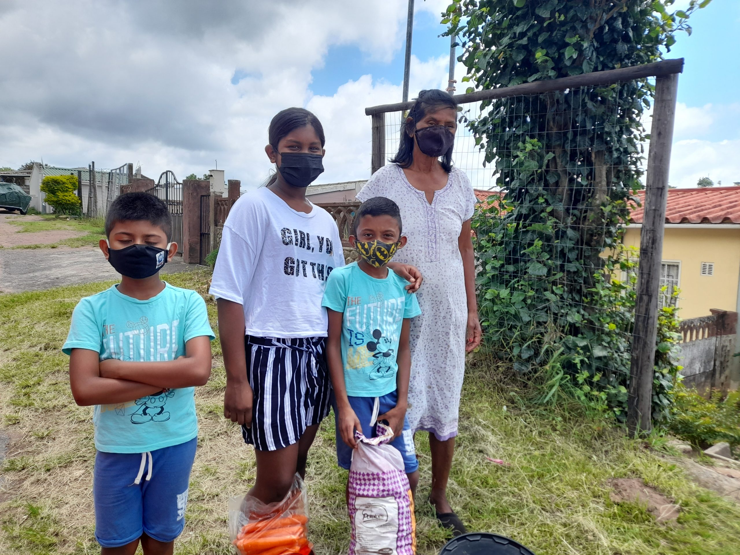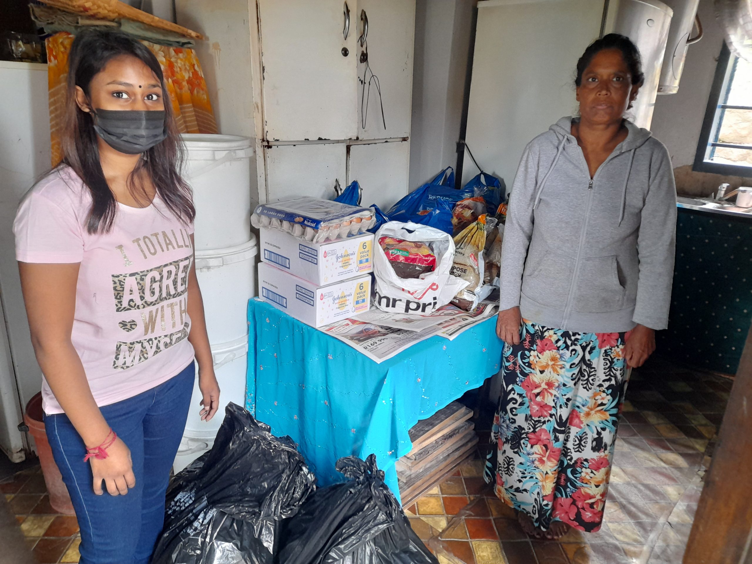 These are my little helpers of the foundation…handing over grocery items and vegetables to a recipient who is a widow and lives alone.